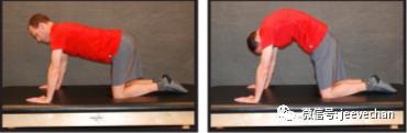 ❶ 双手和双膝着地,开始时背部呈中立位(左图)