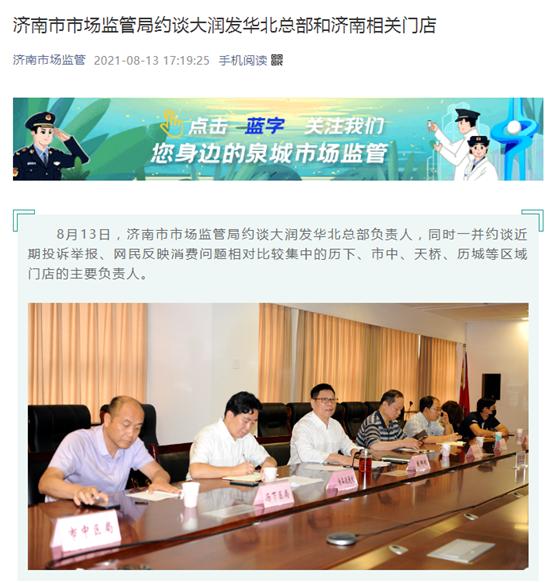 据济南市市场监督管理局官方微信消息,8月13日,济南市市场监管局约谈大润发华北总部负责人,同时一并约谈近期投诉举报、网民反映消费问题相对比较集中的历下、市中、天桥、历城等区域门店的主要负责人。