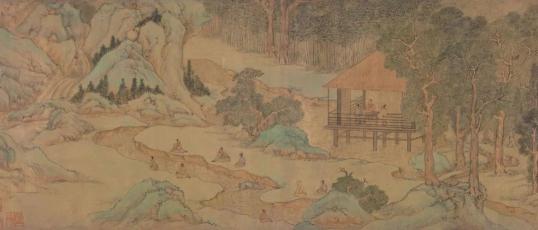 王羲之笔下的兰亭:“此地有崇山峻岭,茂林修竹。又有清流急湍,映带左右,引以为流觞曲水。”