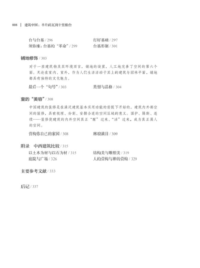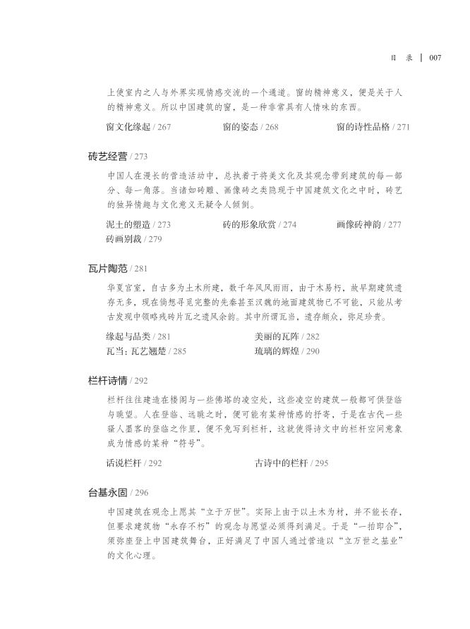 2. 前此关于中国古代建筑艺术的书籍,或偏重史的梳理,或只讲门类或构件,或重技术分析,或多美学解读,将技术与艺术、系统性和深入度结合于一书,是本书的特色和优长。