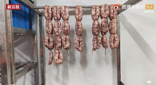 为了尽可能地掩盖原料的异味,拌好的香肠馅通常会腌制一天,由晚班员工灌成肠放在冷库里晾置,最后再由早班烤制成熟后包装销售。