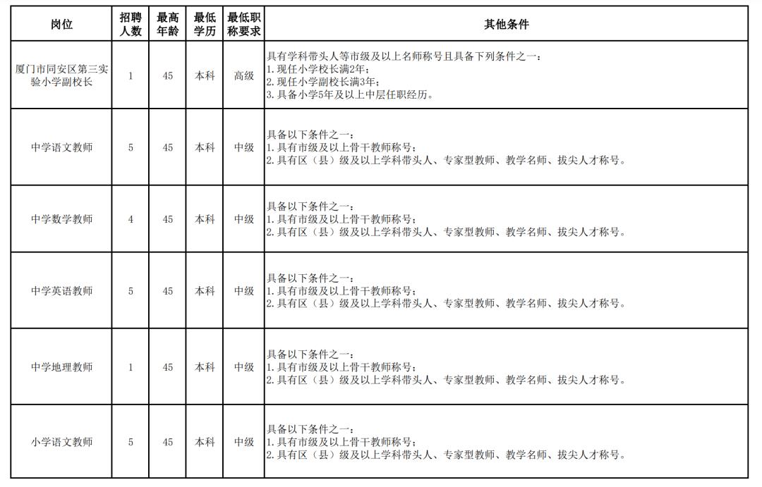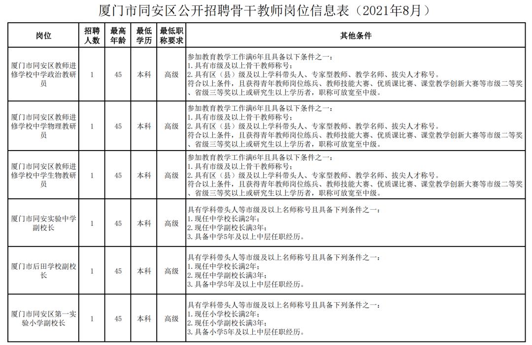 同安区招聘中小学骨干教师