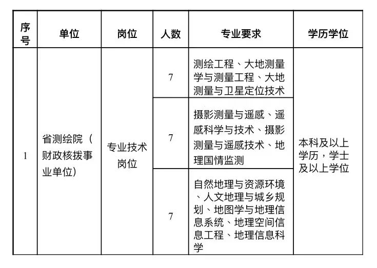 1、全日制本科及以上学历,地理信息系统、计算机、信息工程、城乡规划、土地资源管理等专业;硕士研究生及以上学历优先。