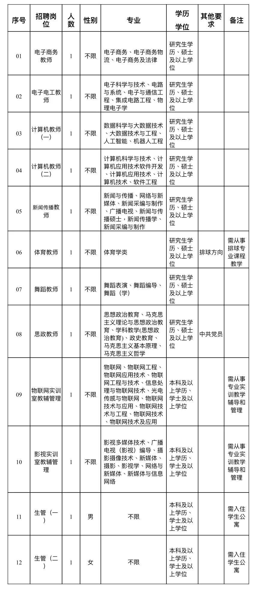1、具有中华人民共和国国籍,拥护中国共产党的领导,热爱社会主义,遵纪守法,品行端正;政治素质过硬,工作责任心强,具有良好的师德师风,善于组织沟通管理。