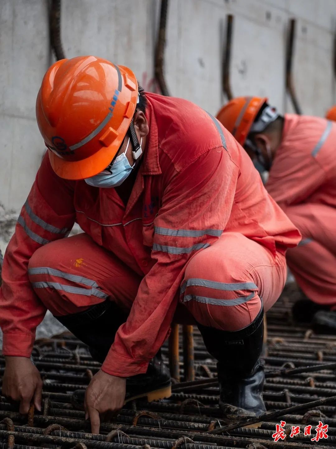 施工单位中铁七局项目副经理王礼新紧盯着悬挖钻机,当钻孔顺利结束,他才移步到钢筋加工棚,查看钢筋笼绑扎。上午,巡视了工地一圈,除了检查施工情况,他一直留意施工人员是否佩戴口罩。“我们共有68名人员,现在一刻也不能松懈,只有创造出安全的施工环境,才能保持施工正常进行。”