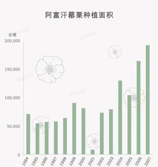 阿富汗战争于2001年打响,也就是从这时开始,塔利班治下的秩序彻底崩塌,阿富汗用了几个月时间又重新回到世界毒品产量的顶峰