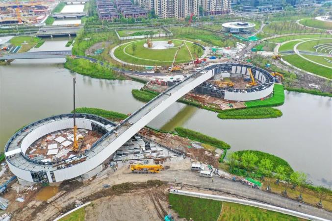 全国工程勘察设计大师、中国建设科技集团所属中国建筑设计研究院总建筑师李兴钢介绍,桥身借鉴了数学的无限符号“∞”,采用了钢与混凝土组合结构创新技术,钢结构总重达1200余吨。
