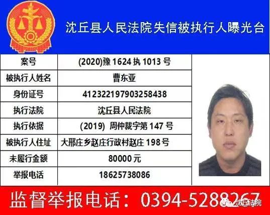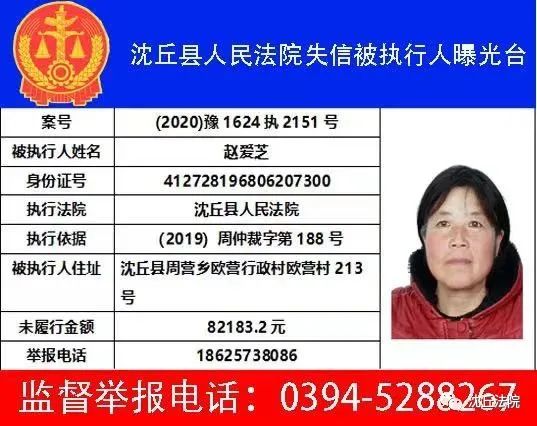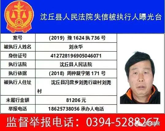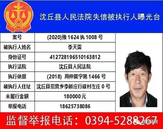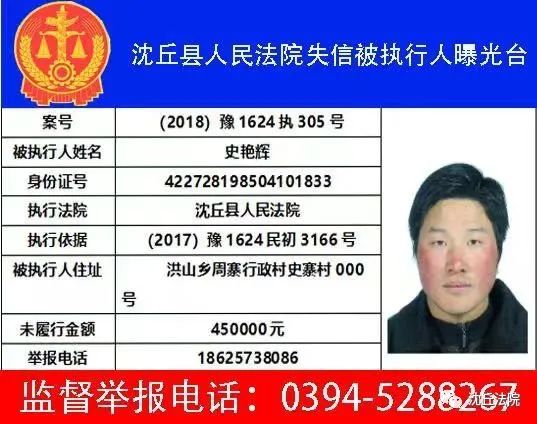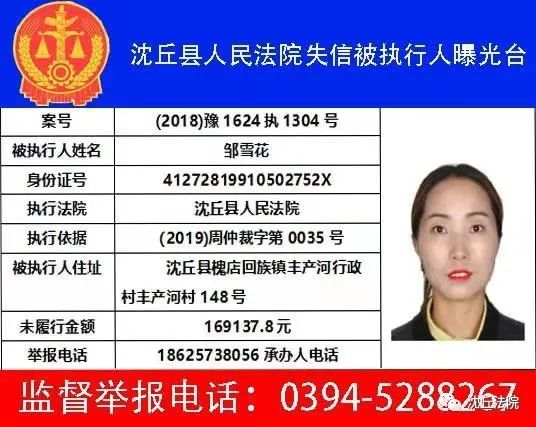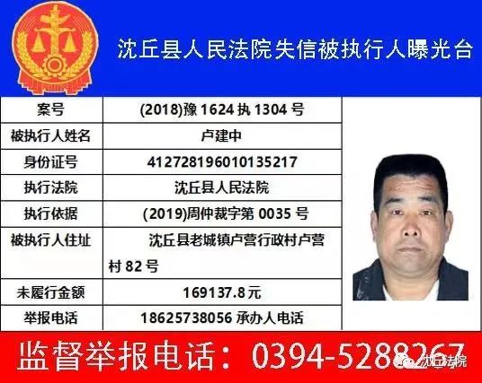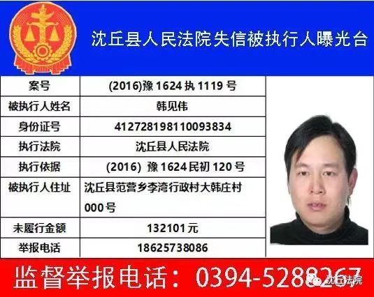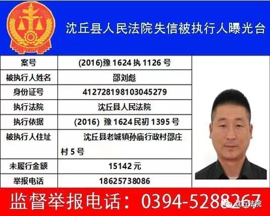原标题:《【曝光台】沈丘法院曝光了一批失信被执行人见到他们请举报(第一期)》
