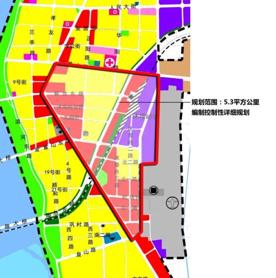 火车站片区位于河东区九曲街道,北至凤翔街,西至温泉路,南至远通汽贸用地,东至陶然东路,面积约3.8平方公里。