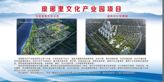琅琊里文化产业园一期项目占地300亩,总建筑面积36万平方米,主要规划建设滨河康养度假区。