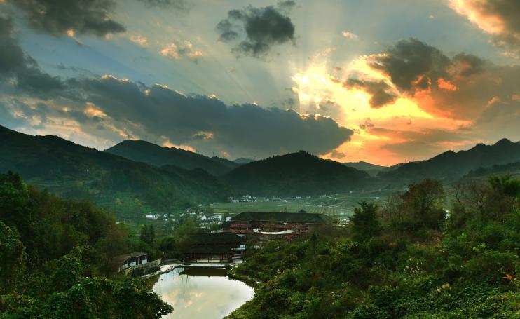 福泉黄丝江边布依寨位于贵州省福泉市马场坪街道办事处的黄丝村,背靠郁郁葱葱的麒麟山,门对波光粼粼的鱼梁江,江水平缓,清澈诱人,有和善桥、姊妹岩等自然人文景观。