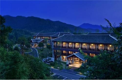 整个酒店坐落于群山之间,为旧建筑改造项目,山下有少数民族村落,周边有农业观光,酒店在山巅,四周植被环绕,茂密异常,形成天然氧吧。整个酒店与山为伴,回归古朴,便捷的交通让更多的都市人,能在闲暇时光得到一丝放松。