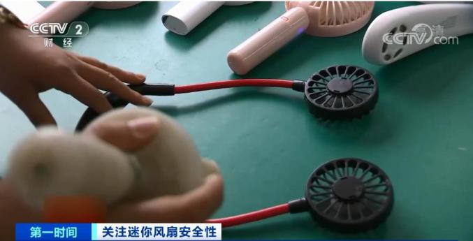 从调查结果来看,便携式电风扇存在的隐患,恰恰是消费者在使用的时候,不太容易发现的地方。另外,还有一种能挂在脖子上的迷你电风扇,也存在很大的使用风险。