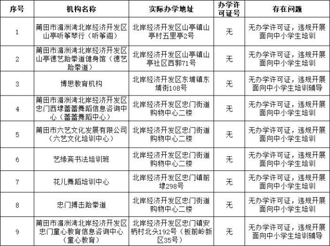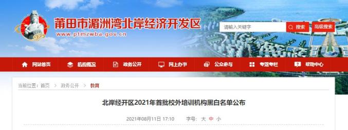 据莆田市湄洲湾北岸经济开发区网站消息,8月11日,莆田市湄洲湾北岸经济开发区教育局发布了2021年首批校外培训机构黑白名单。