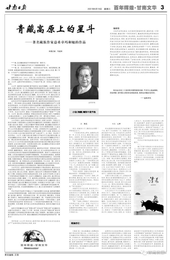 ——她,为当代藏族文学史打开了清晨般崭新的一页。