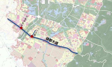 将驿都大道建设成为下穿隧道或高架桥连接的「零红绿灯」式快速通道,应争取与二环高架进行串联,同时应在现绕城高速增加出入口联通驿都大道。