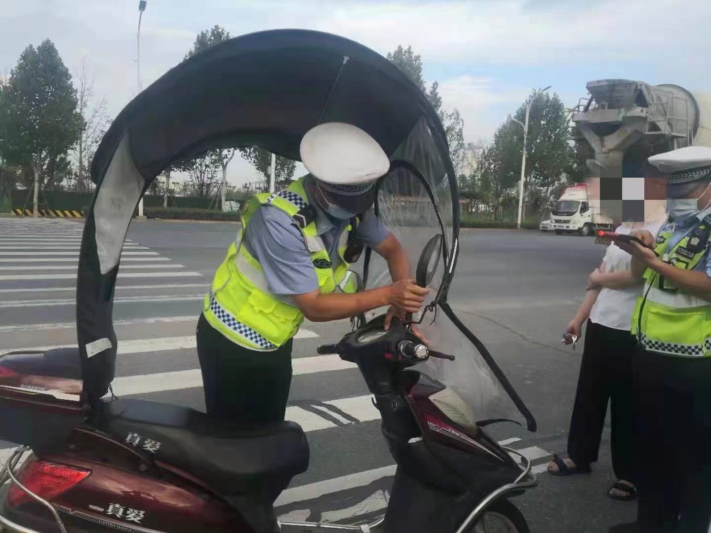 交警提示,电动车加装遮阳棚会有如下交通安全隐患: