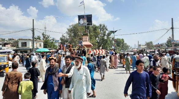 这是8月15日拍摄的阿富汗拉格曼省米特拉姆街头。