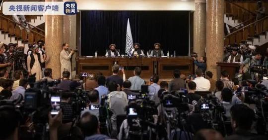 阿富汗当地时间17日,阿富汗塔利班新闻发言人扎比胡拉 · 穆贾希德在位于阿富汗首都喀布尔的媒体中心举行记者会,这也是塔利班 15 日进入阿富汗首都喀布尔之后的首次记者会。