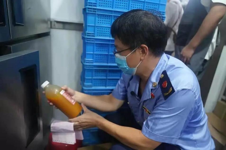 此次检查受检的网红奶茶店由抽签选定。检查结果显示,经工作人员检查发现,蜜雪冰城(仓山万达店)的仓库里存有发霉柠檬,8月10日调制的糖浆、奶制品未密闭保存,且无冷藏直接在室温下放置到11日下午。