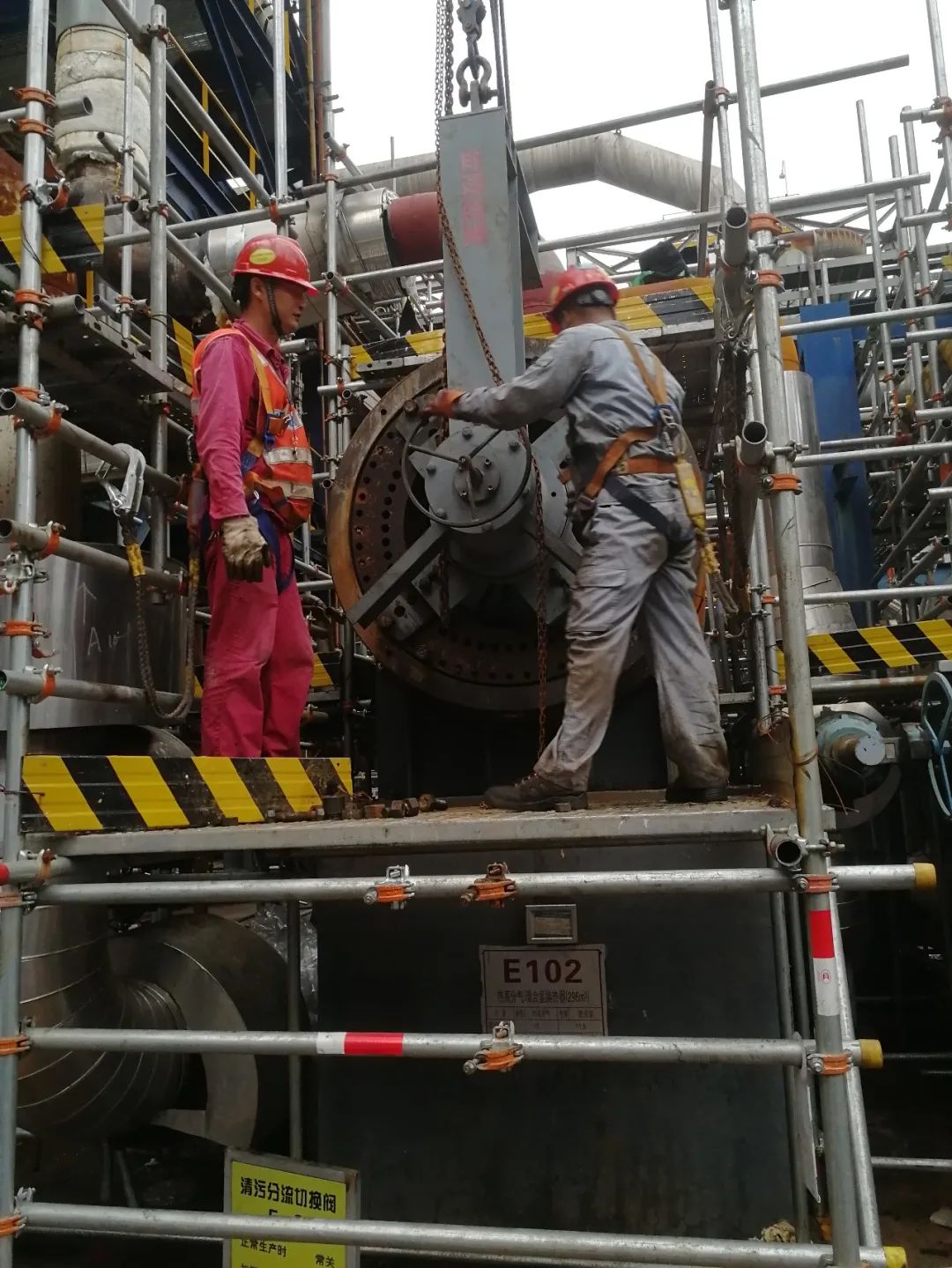 研发工装采用新技术、新装备提高检修效率,在蜡油加氢装置检修中得到体现。随着高压换热器头盖的拆卸和回装,标志着公司换热器新型工装设备的研发及使用,取得圆满成功,得到了金陵公司相关领导的一致肯定。