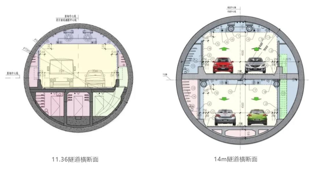 设计施工团队将采用一台直径14米、大约五层楼房高的超大直径盾构,穿越黄浦江、建成双层双向四车道的越江隧道主线;其后,隧道在浦东分为南北两线,施工团队再采用两台直径11.36米的小盾构,建成两条穿越前滩大道的单层单向两车道的隧道,北线接海阳西路,南线接高青西路。