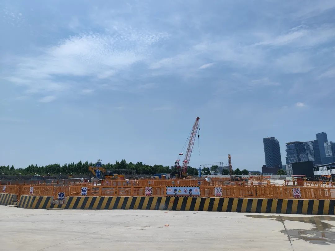 目前正在开挖的浦东1号工作井,地处浦东前滩休闲公园,未来将成为“一大两小”三台盾构的始发井,不仅工作井内部结构复杂,还使得工作井基坑具备了“大型异形超深”的特点。