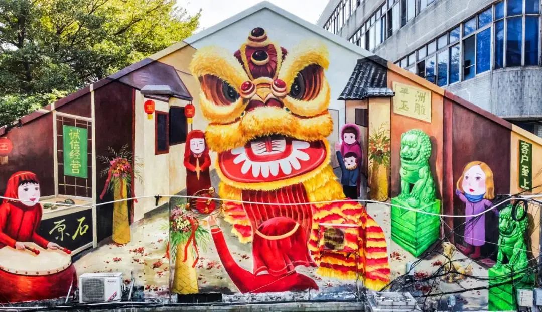佛山传统形象的涂鸦与岭南风建筑的碰撞,丝毫不显突兀,反而令玉器街充满年轻活力。