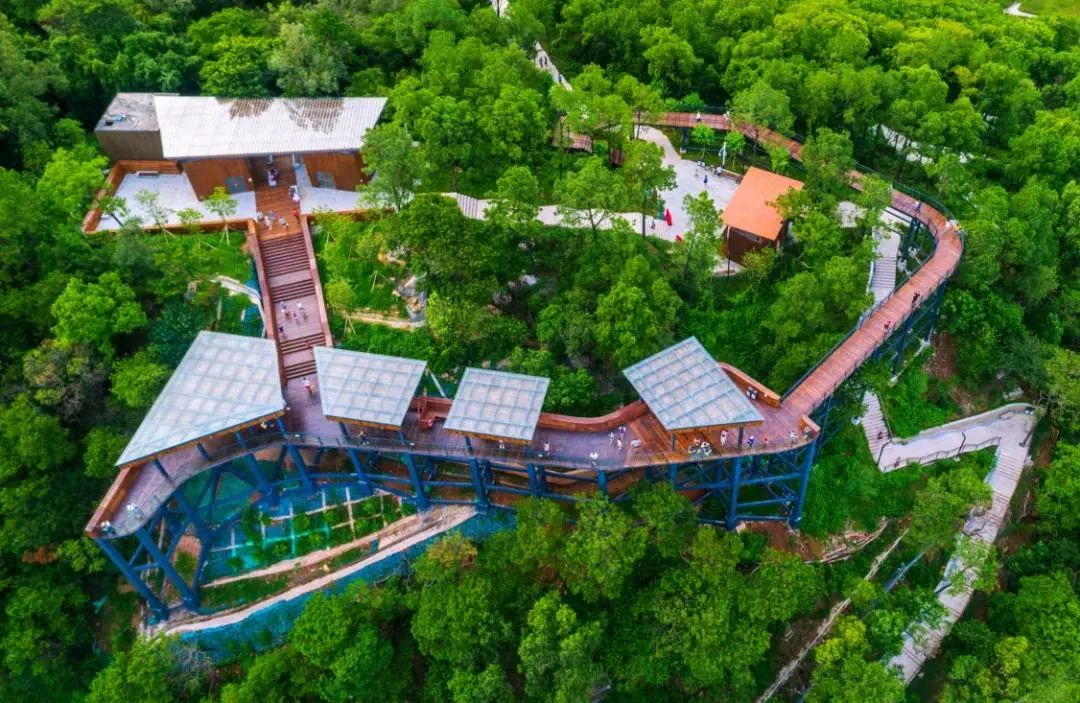 沿着盘山绿道来到公园最顶端,空中栈道成为市民必到的打卡点。在这里登高望远,俯瞰这座城市,从另一个角度看看这美丽的佛山~