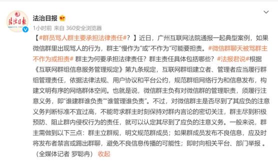 原标题:《【全民学法】微信群里被骂,群主要担责?判了!》