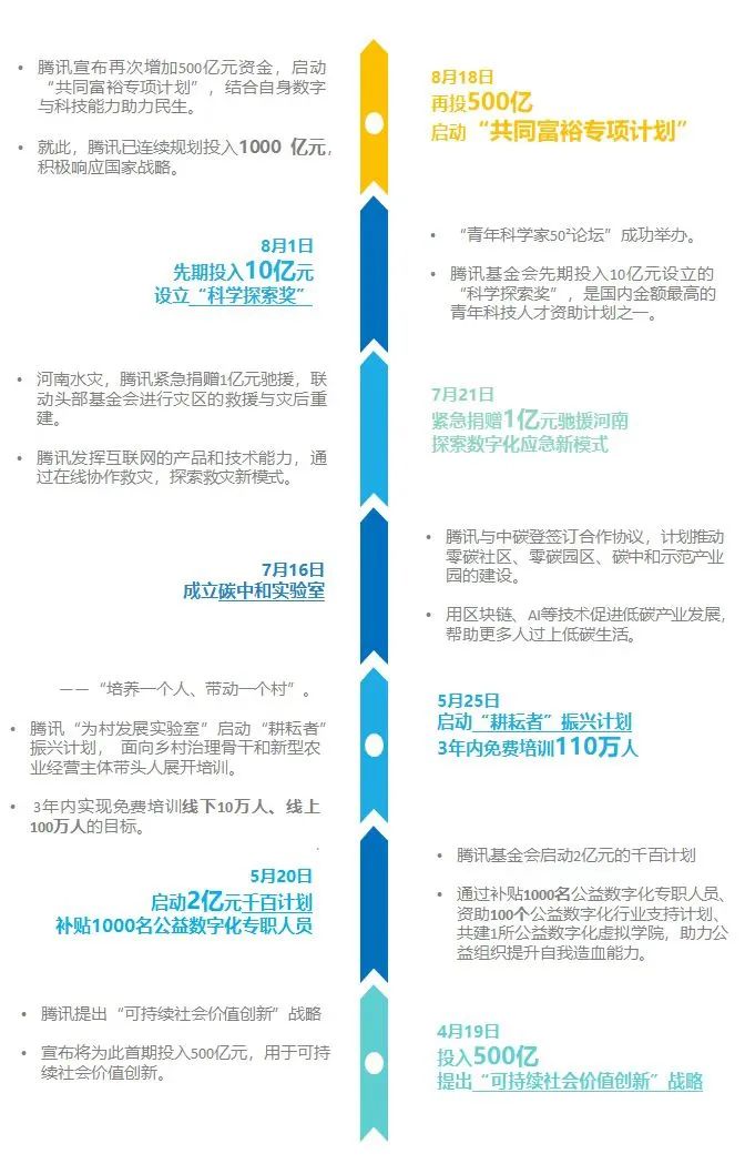 这是继4月首次提出“可持续社会价值创新”战略并投入500亿元后,腾讯公司基于对于自身企业责任和三次分配时代背景的再一次战略考量。
