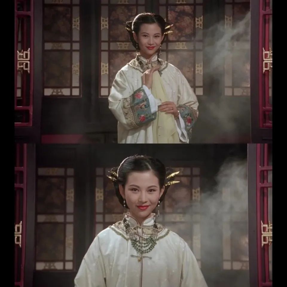 一面含情脉脉,满心欢喜;一面俏皮可爱,纯真烂漫,让观众魂牵梦绕数十载。