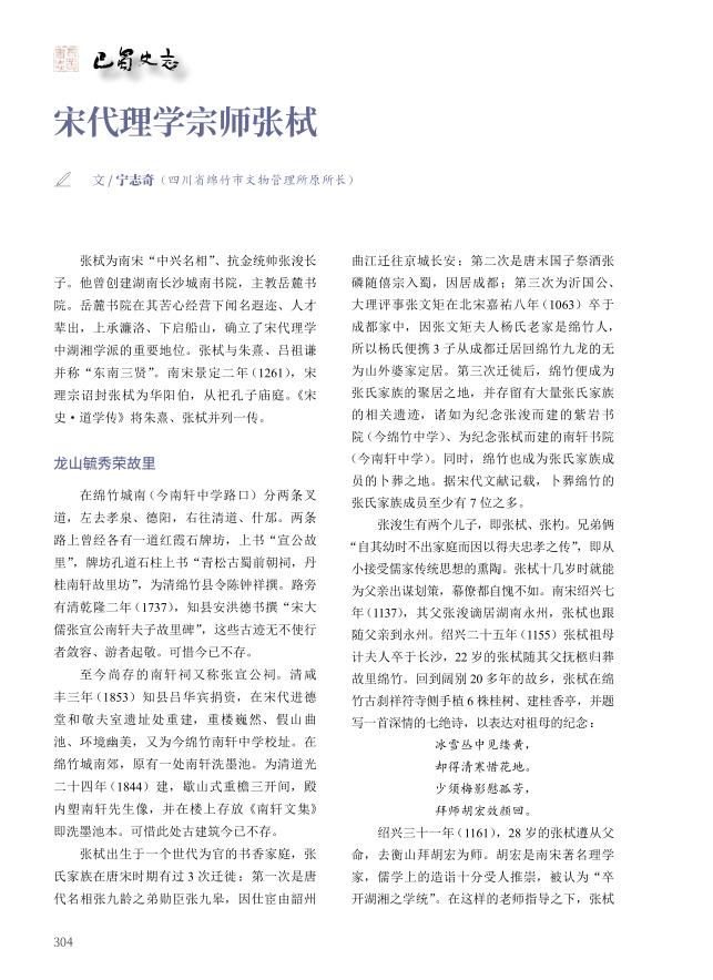本文载《巴蜀史志》2020年第5期“四川历史名人”专刊宋代理学宗师张栻