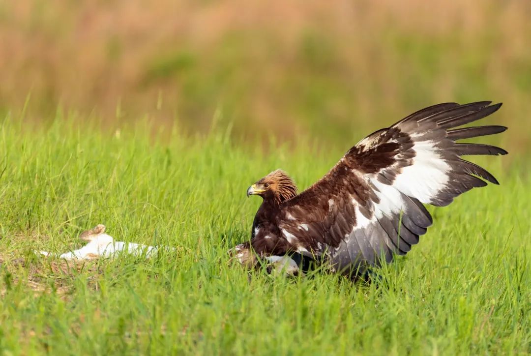 《月令七十二候集解》曰:“初候,鹰乃祭鸟。鹰,义禽也,秋令属金,五行为义,金气肃杀,鹰感其气,始捕击诸鸟,然必先祭之,犹人饮食祭先代为之者也,不击有胎之禽,故谓之义。”意思是说,此时,自然界的动物已进入繁殖旺盛期,鹰类捕食变得容易了。鹰类总是先将捕获的猎物摆放于四周,然后再享用。古人便把这种现象描述为“鹰乃祭鸟”。意指其像人一样,感念上苍赐予它们丰盛的食物。拍摄时,要注意祭拜的拟人化。