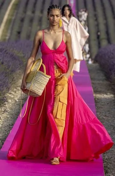 只不过,相对喜欢黑白灰、暗色系的巴黎风格,南法风格要肉眼可见的花哨——比如各种很死亡的芭比粉、荧光黄以及总是和隔壁意大利傻傻分不清楚的碎花和印花。