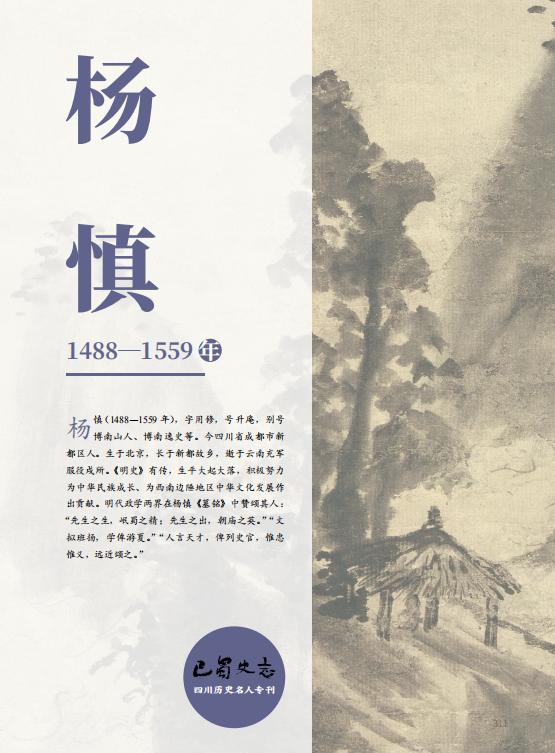 这首中国人耳熟能详的词,出自明代大才子杨慎之手。作为四川首批历史名人,杨慎几乎是天才般的存在。他创造中国文化史、中国古代学术史、中国科举史上三大神话,是百年难出的百科全书式人才,为西南地区文化作出杰出贡献。他是俯仰大地的文学家、语言学家、历史学家。他是巴蜀文化史上一颗闪耀的明星。