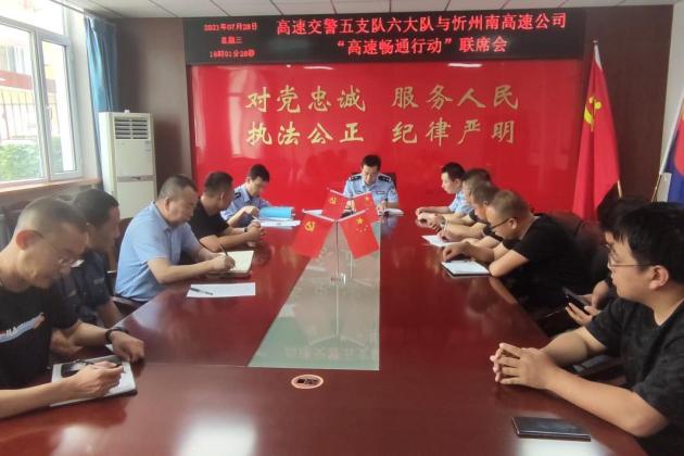 高速五支队及各大队与辖区路政、养护、信息、高德地图软件公司、费收部门、隧道管理、忻州气象台等单位的负责人员召开次“高速畅通行动”工作联席会议,构建精准发布信息工作机制。强化恶劣天气、易拥堵、易发生事故路段动态的预警提示,管制信息在规定时间及时发布。