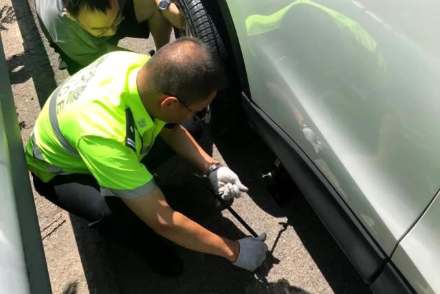8月2日上午,民警巡逻至G1812沧榆高速保德方向K397附近时,发现一辆轿车停在应急车道,司机正在车辆后方摆放三脚架。为避免车辆停靠在应急车道发生二次事故,看到这一情况后,民警立即上前了解情况。经询问得知,驾驶人从忻州回保德,行至此处时车辆突然爆胎,自己没有遇到过这种情况,一时间手足无措,刚才还给4S店打电话询问怎么更换轮胎。民警听后,二话不说埋头上手变身“修车工”,经过20分钟的努力,更换好备用轮胎,解了司机的燃眉之急。