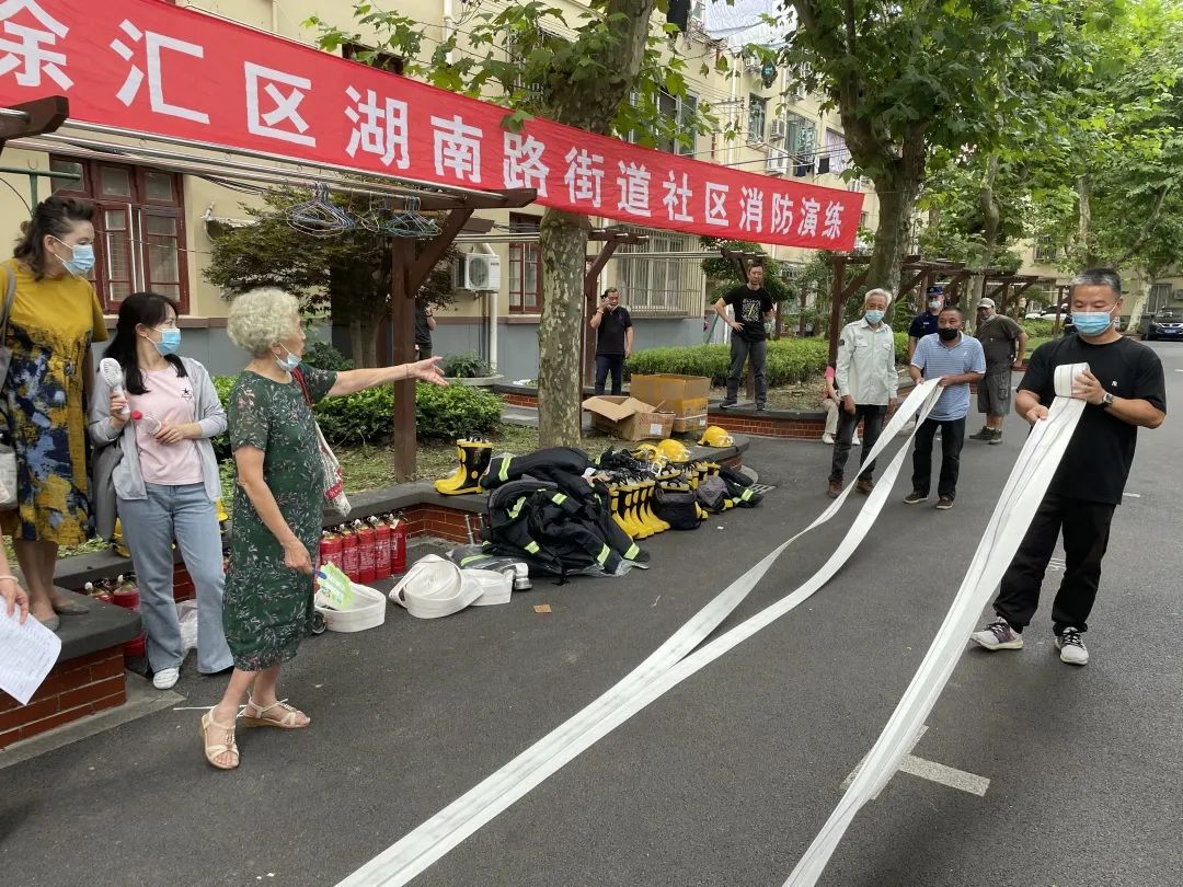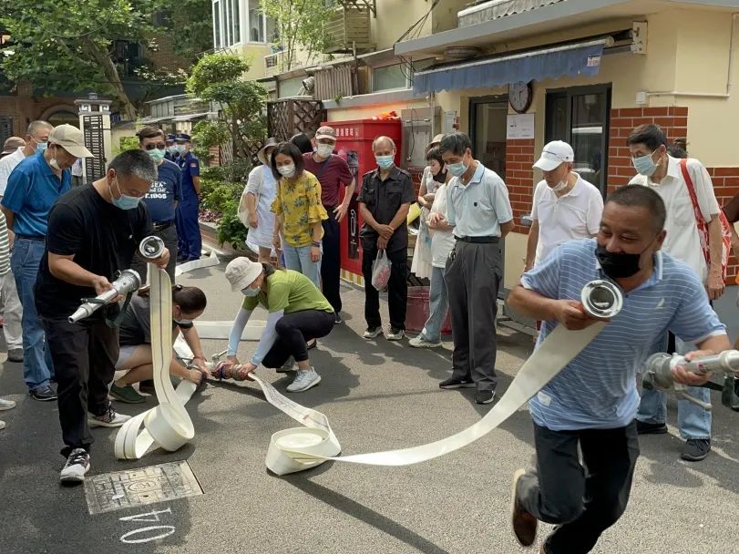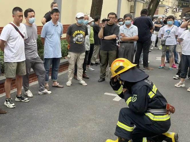 原来,为了提升微型消防站队员、社区居委干部及居民群众应对火灾能力,湖南街道在武康路73弄组织辖区16个居委微型消防站队员和社区居民开展了消防应急疏散演练活动。