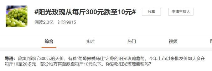 原标题:《吃了吗?这种葡萄从每斤300元跌至10元!网友却说……》