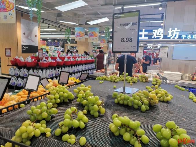 8月18日,西昌永辉超市里的阳光玫瑰葡萄售价每斤8.98元
