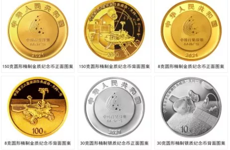 7.中国首次火星探测任务成功纪念币来了:23日,中国人民银行发布消息称,定于8月30日发行中国首次火星探测任务成功金银纪念币一套。该套纪念币共3枚,其中金质纪念币2枚,银质纪念币1枚,均为中华人民共和国法定货币。(新华网)
