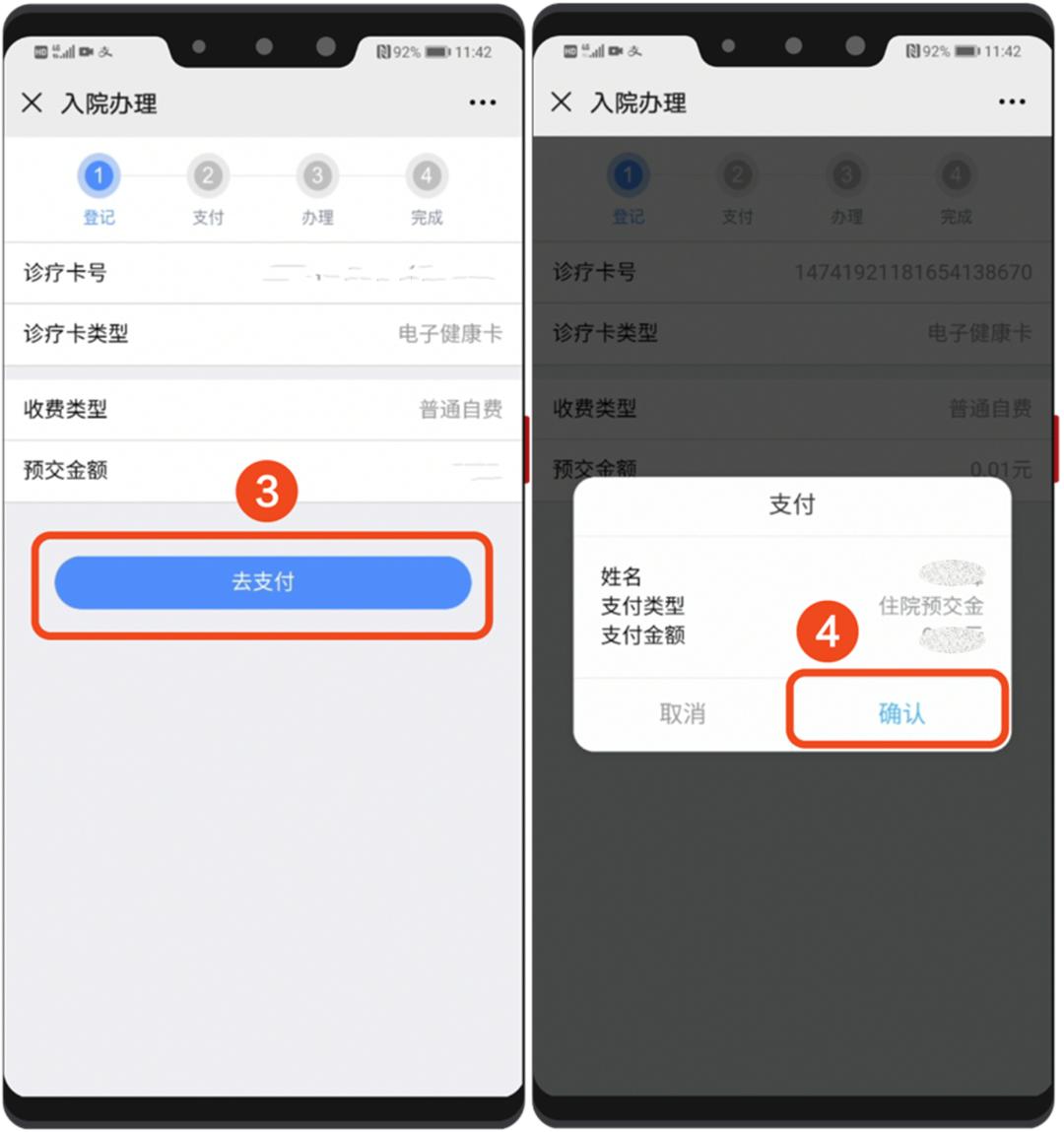 入院需要先缴纳一笔预交金,点击“去支付”后可在线支付。