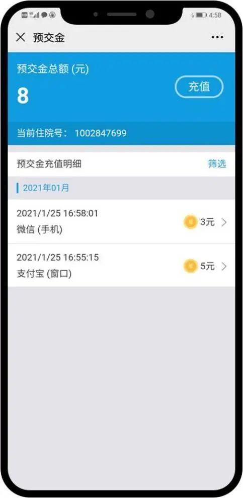 入院时,通过支付宝和微信支付预交金的患者才能在手机端办理出院结账,使用银行卡或现金支付预交金的患者仍需到窗口办理。