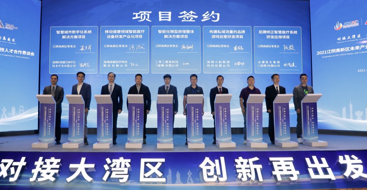 去年江阴高新区在上海张江举办“融入大上海·创新一体化” 2020江阴高新区科技人才合作恳谈会,江阴高新区(上海张江)科创孵化器揭牌成立,首批5个科创项目签约落地,开创了无锡“科创飞地”先河。今年4月25日于深圳召开“对接大湾区•创新再出发”2021江阴高新区未来产业科技人才合作恳谈会,与天安数码城合作成立江阴高新区(深圳)科创孵化器,会上14个优质项目成功签约。今年以来,已通过上海、深圳、北京3个异地孵化器引进科创项目11个。