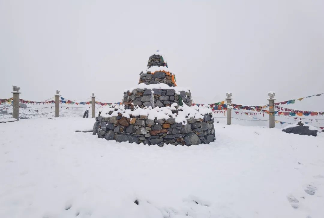 8月25日一早,达古冰川迎来了初秋第一场雪,4860雪山之巅被层层白雪覆盖,云海翻腾之间,似是蓬莱仙境,美到爆了!(达古冰川官微)