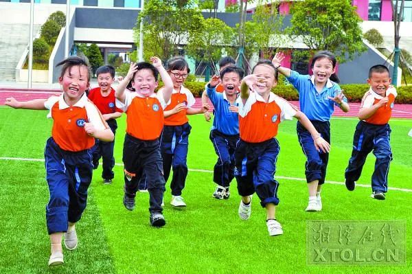 作业减负助孩子回归天性。图为长郡湘潭高新实验小学一年级学生在操场上快乐玩耍。(记者 欧阳天 摄)
