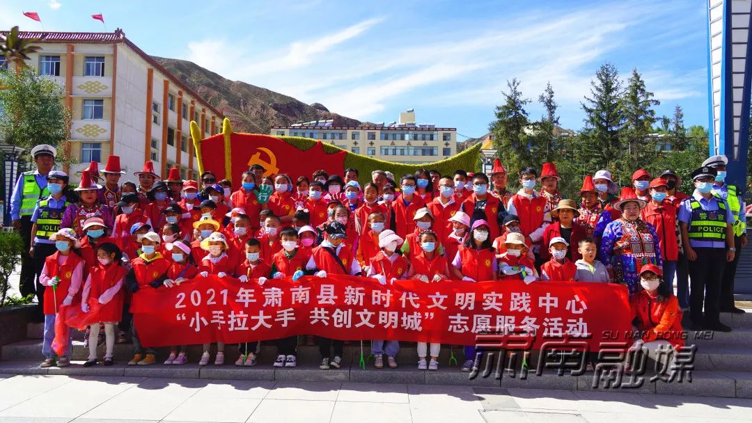 8月24日,肃南县组织开展“小手拉大手 共创文明城”志愿服务活动。