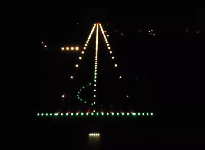 福绵机场跑道助航灯点亮,进行首次灯光检测。