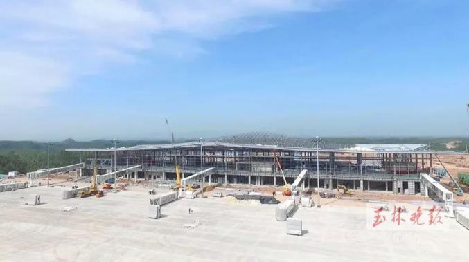 航站楼已封顶,进入装修阶段。5个廊桥安装完成,航站楼区域现雏形。